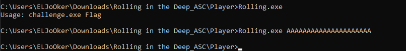 Rolling.exe was a windows executable file written in C, takes 1 argument as a flag and validate it
