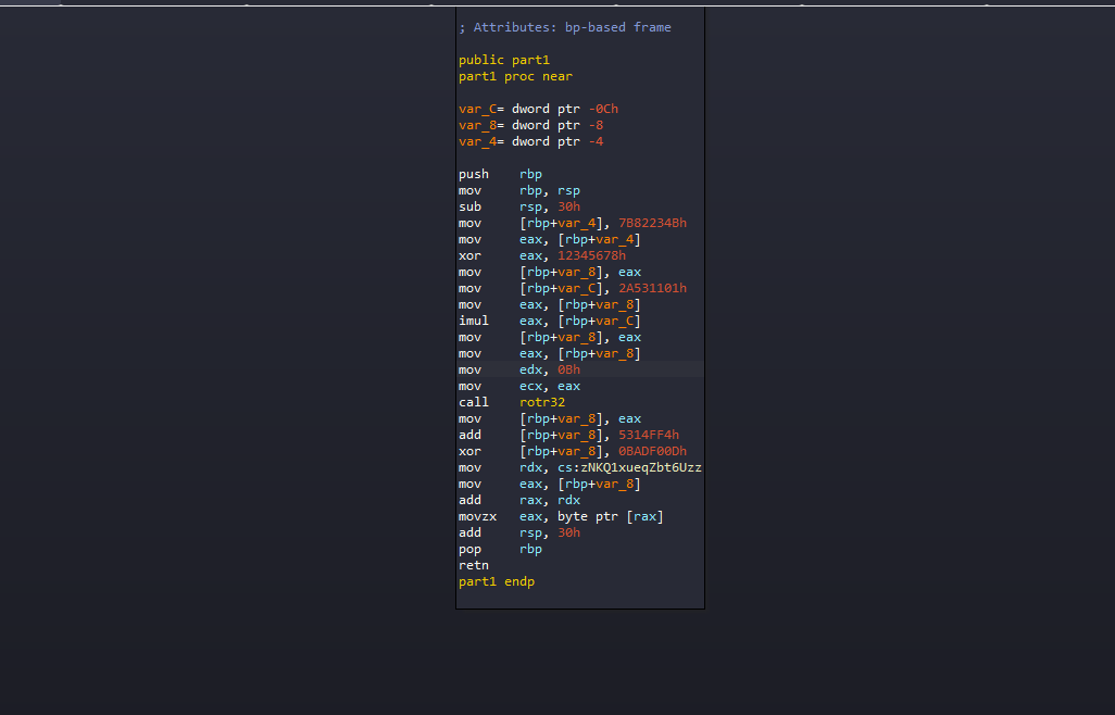 and we can confirm that easily by debugging the DLL in x64dbg and setting the RIP on the first part directly and step until return