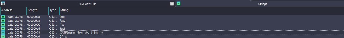- Second step: break on all block, give the program input, and when the program breaks, take a look on strings.