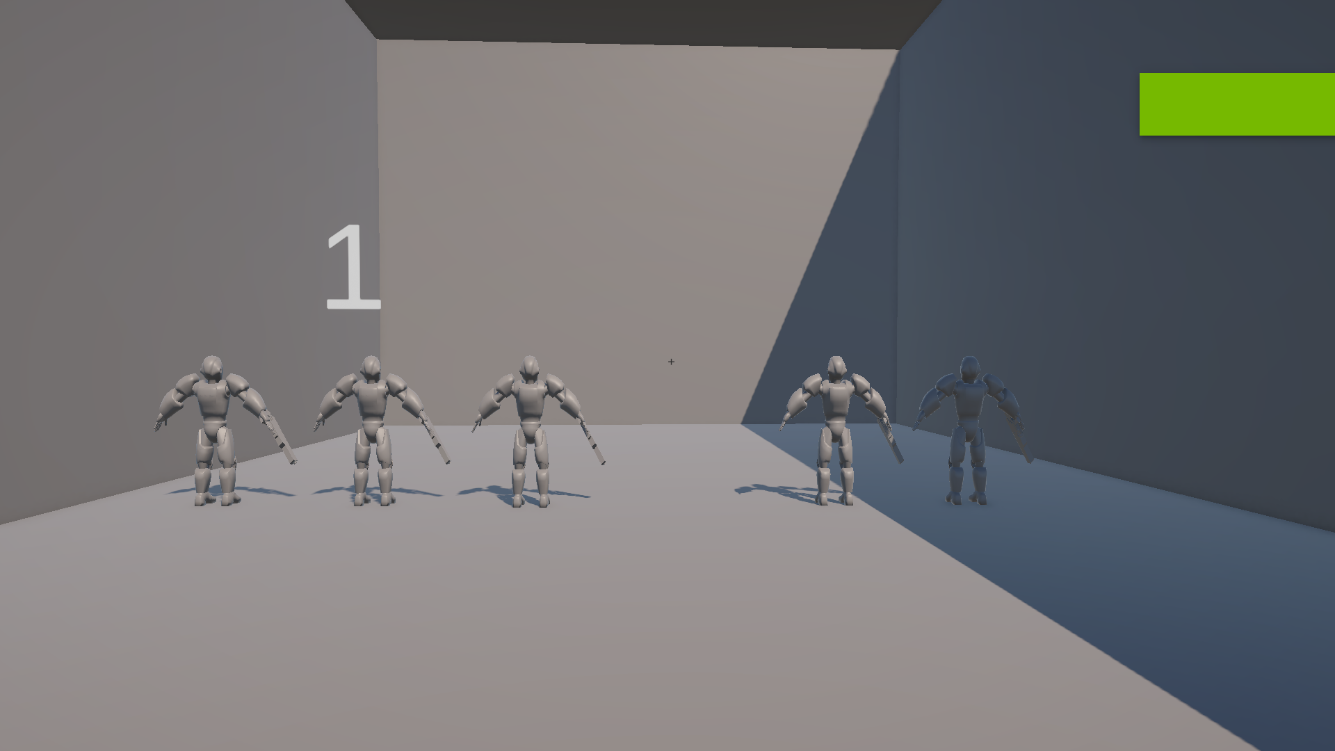We are i a room with a text “1”, when we kill all targets, we move to room 2